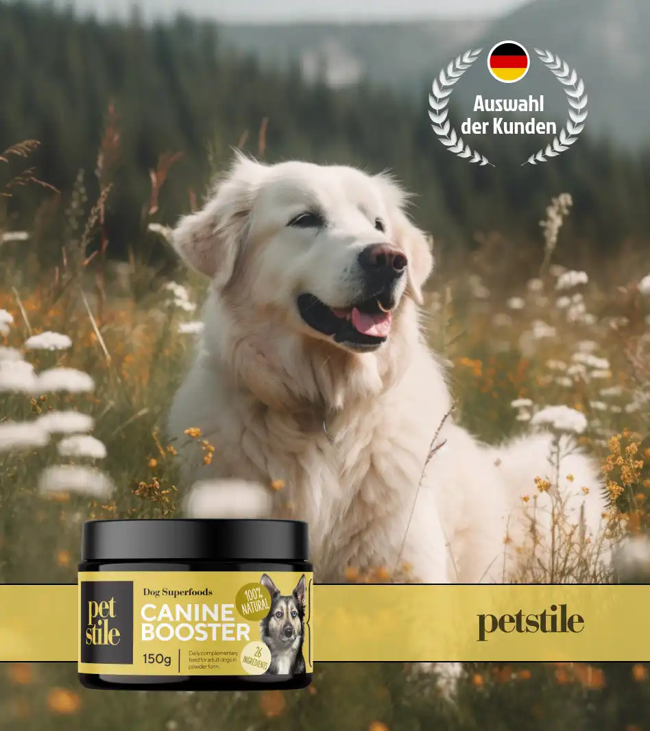 Ich kann Canine Booster von Petstile sehr empfehlen. Mein Hund ist deutlich aktiver und hat ein wunderbares schön glänzendes Fell. Auch mit der Verdauung ist alles bestens.Bis jetzt hat es auch mit den Bestellungen geklappt.